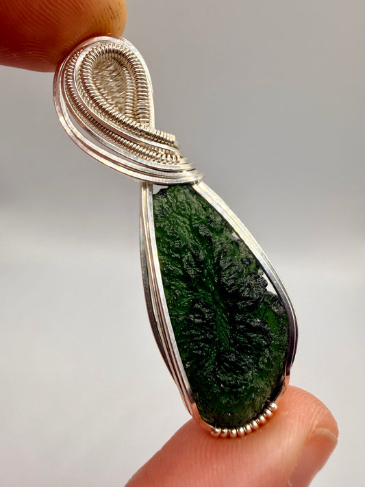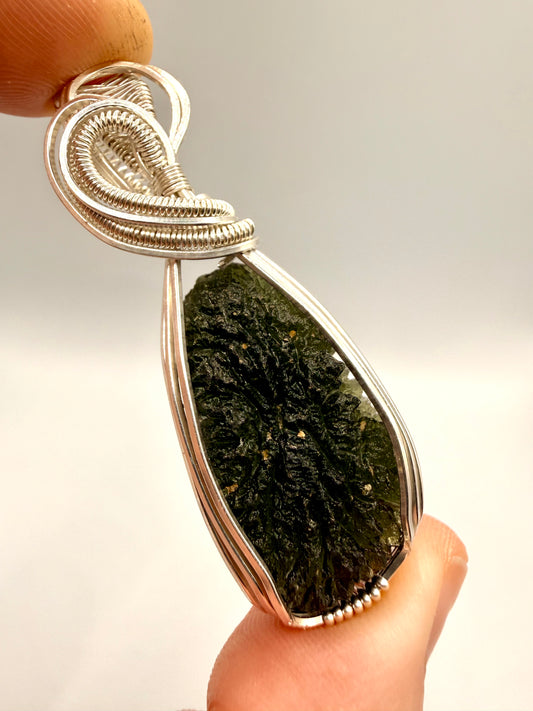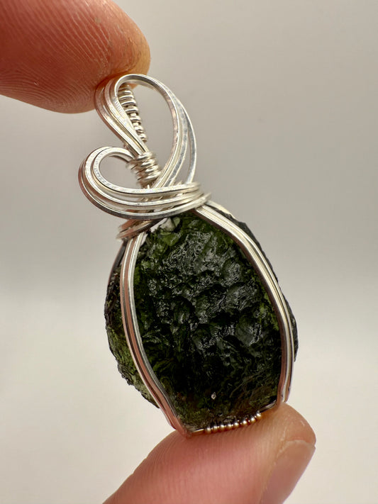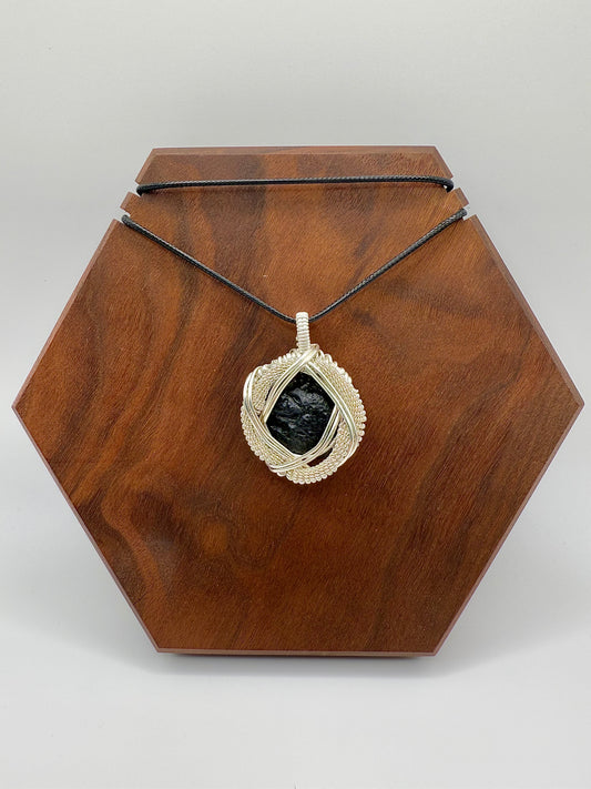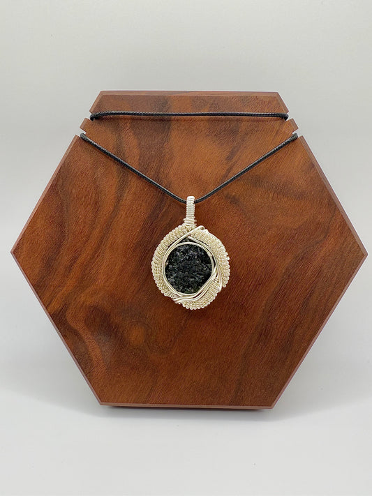 1MSS) Moldavite Pendant Necklace In Sterling Silver