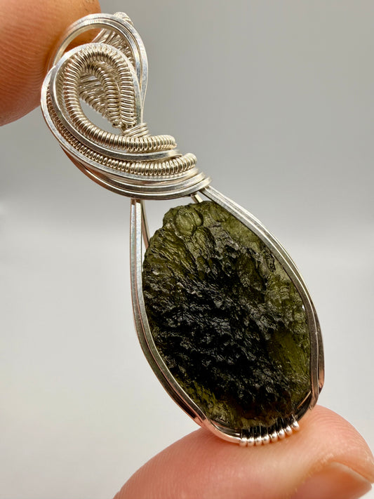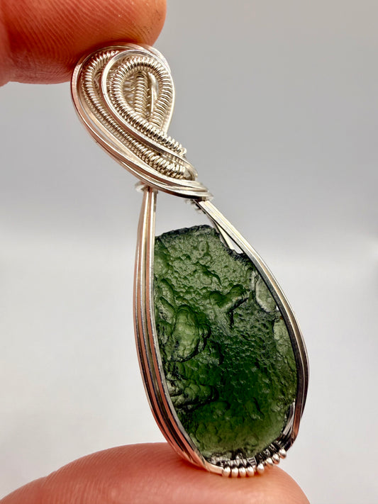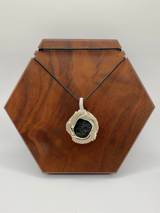 1MSS) Moldavite Pendant Necklace In Sterling Silver