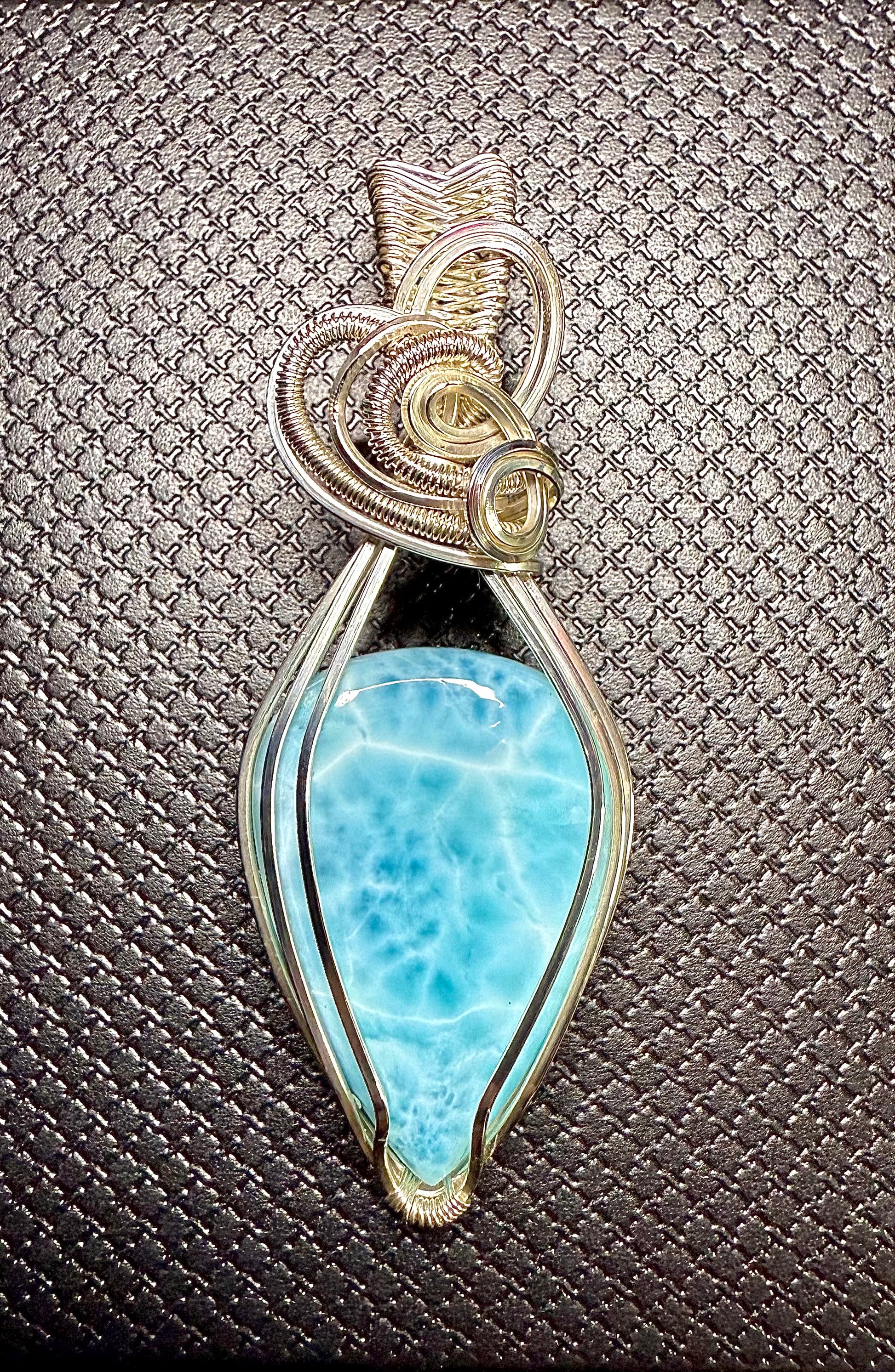 C112) Large Larimar Pendant Necklace In Sterling Silver