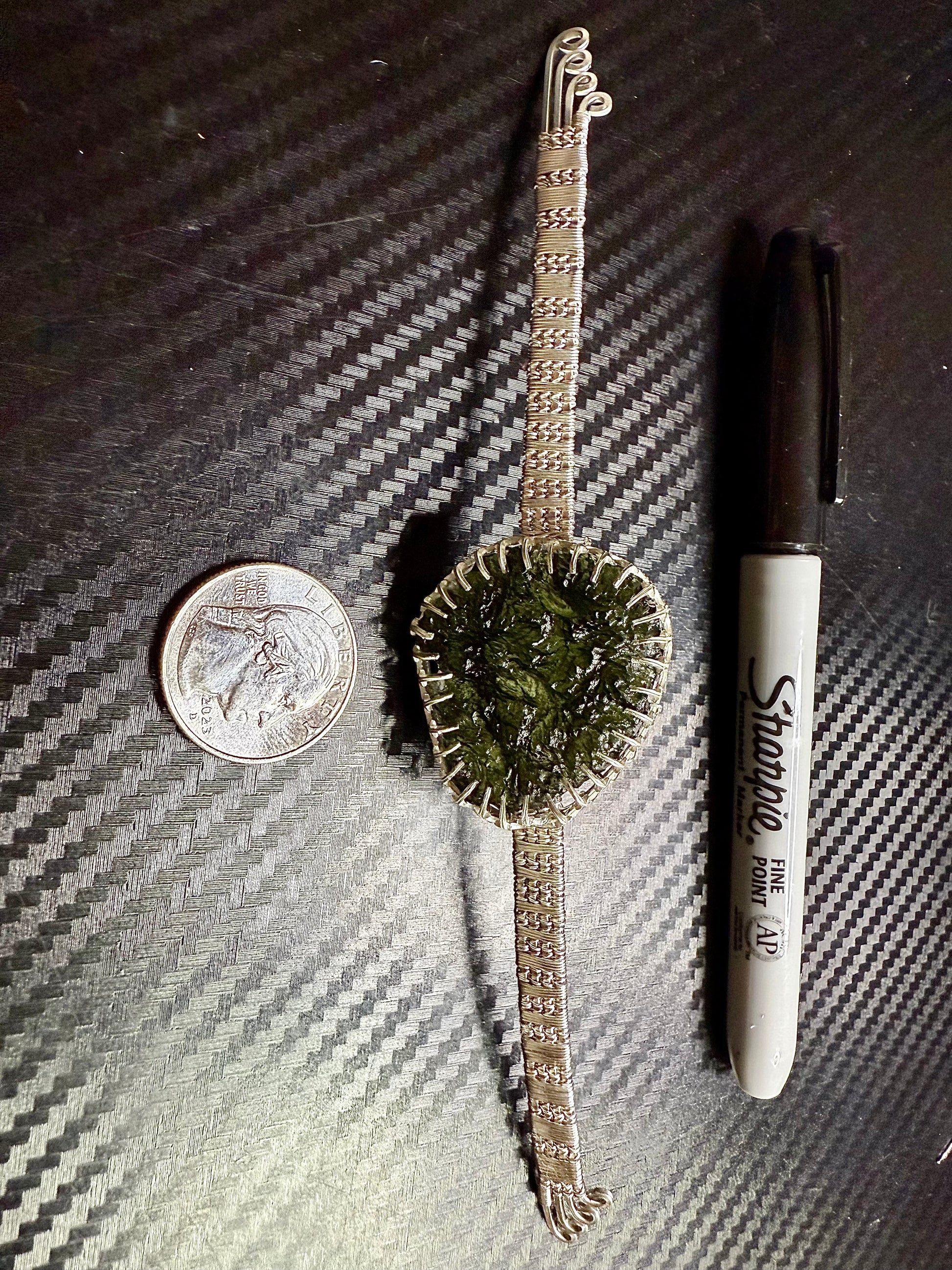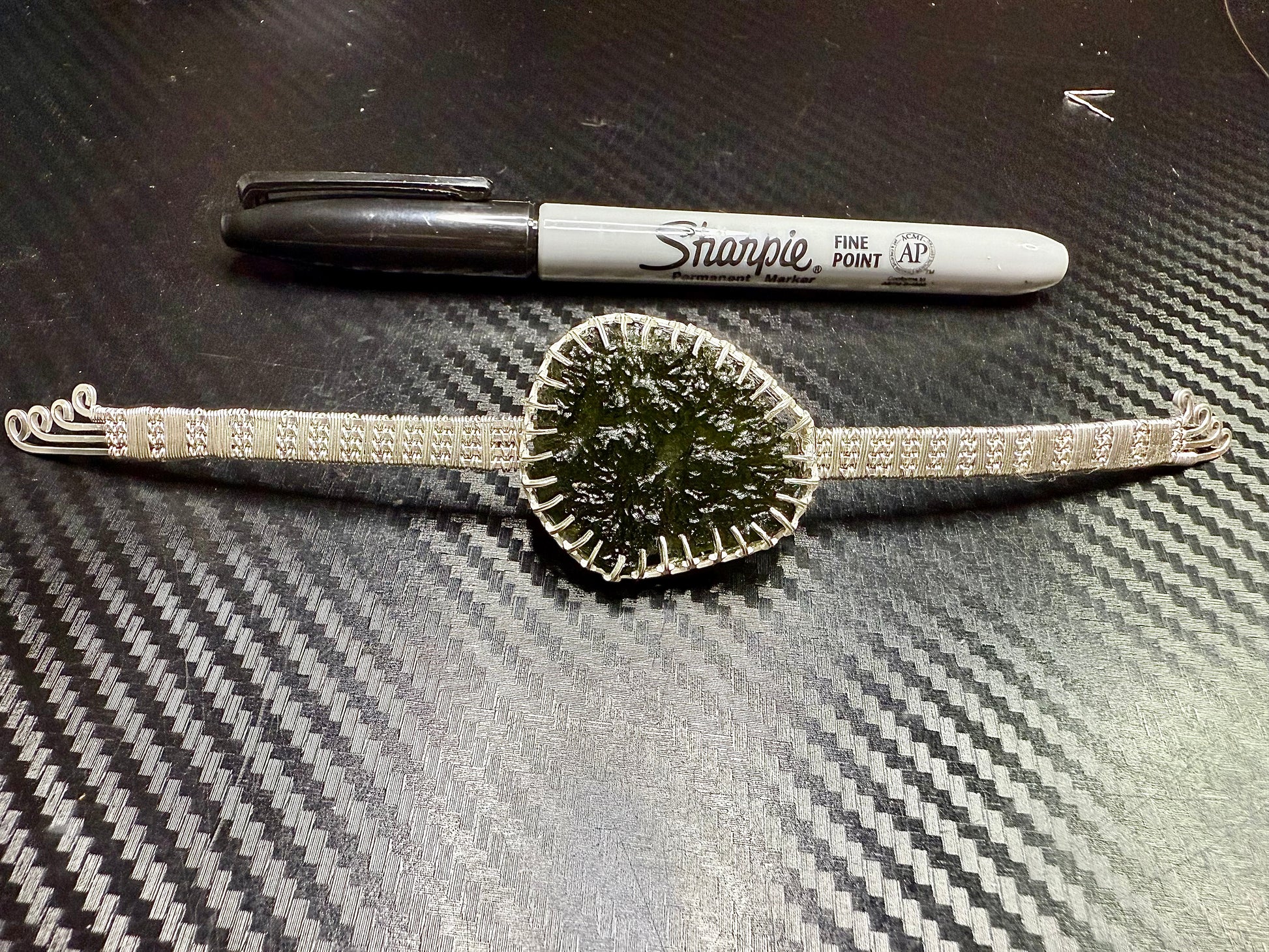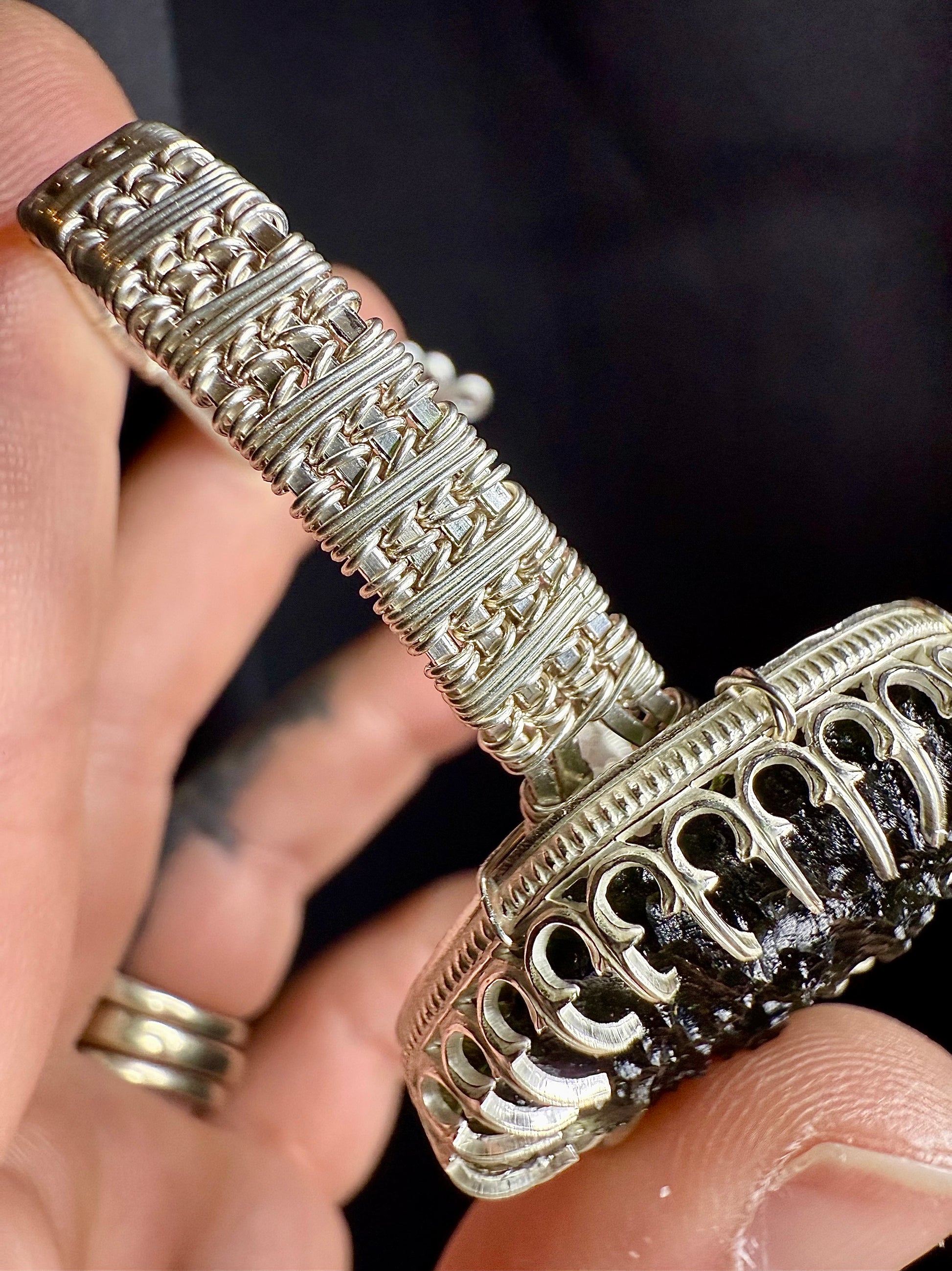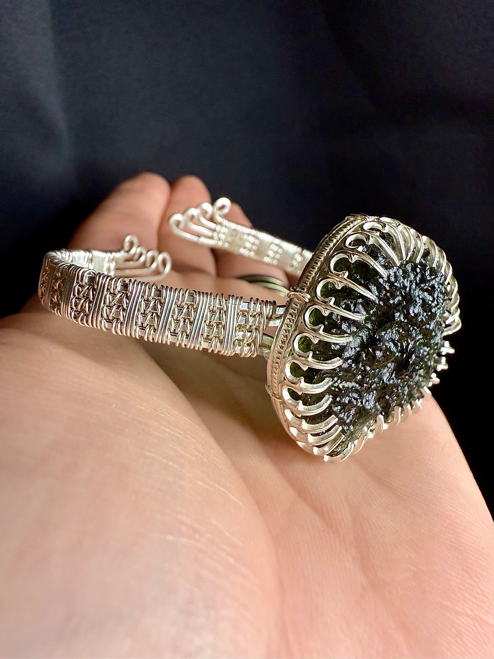 F112) Large Moldavite Bracelet In Sterling Silver