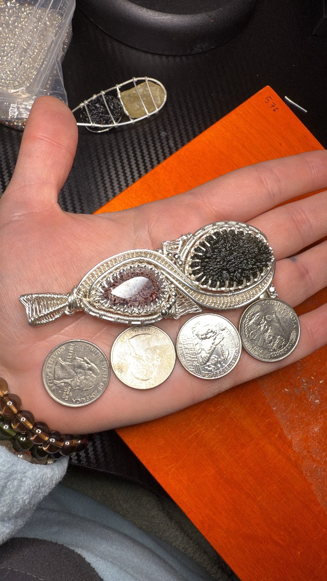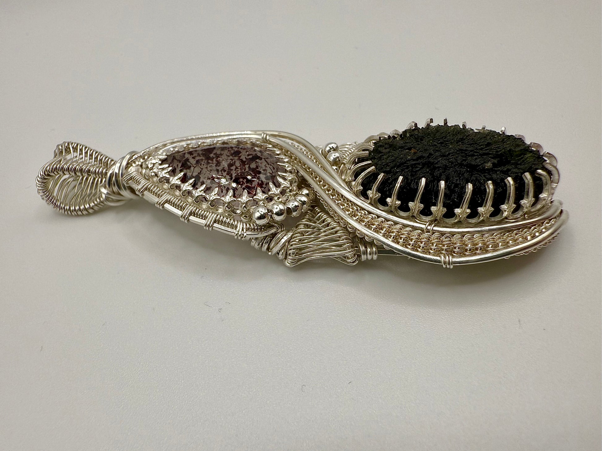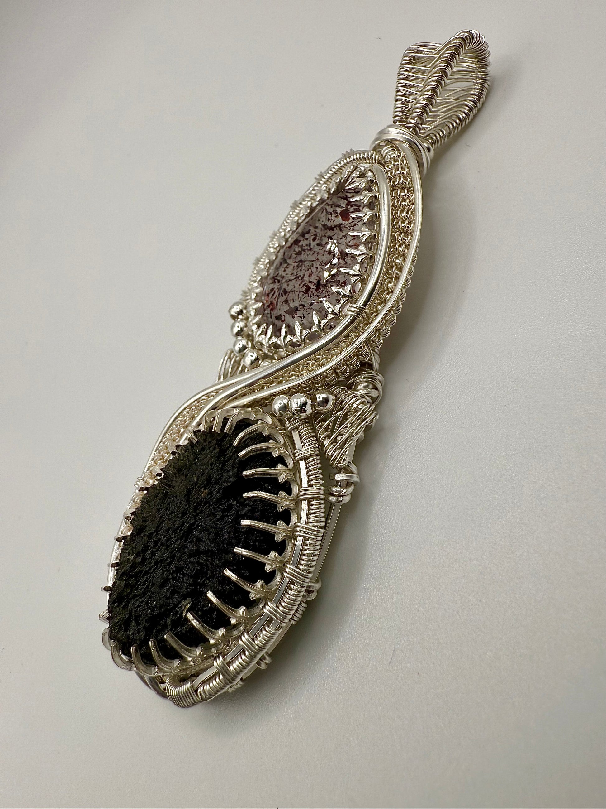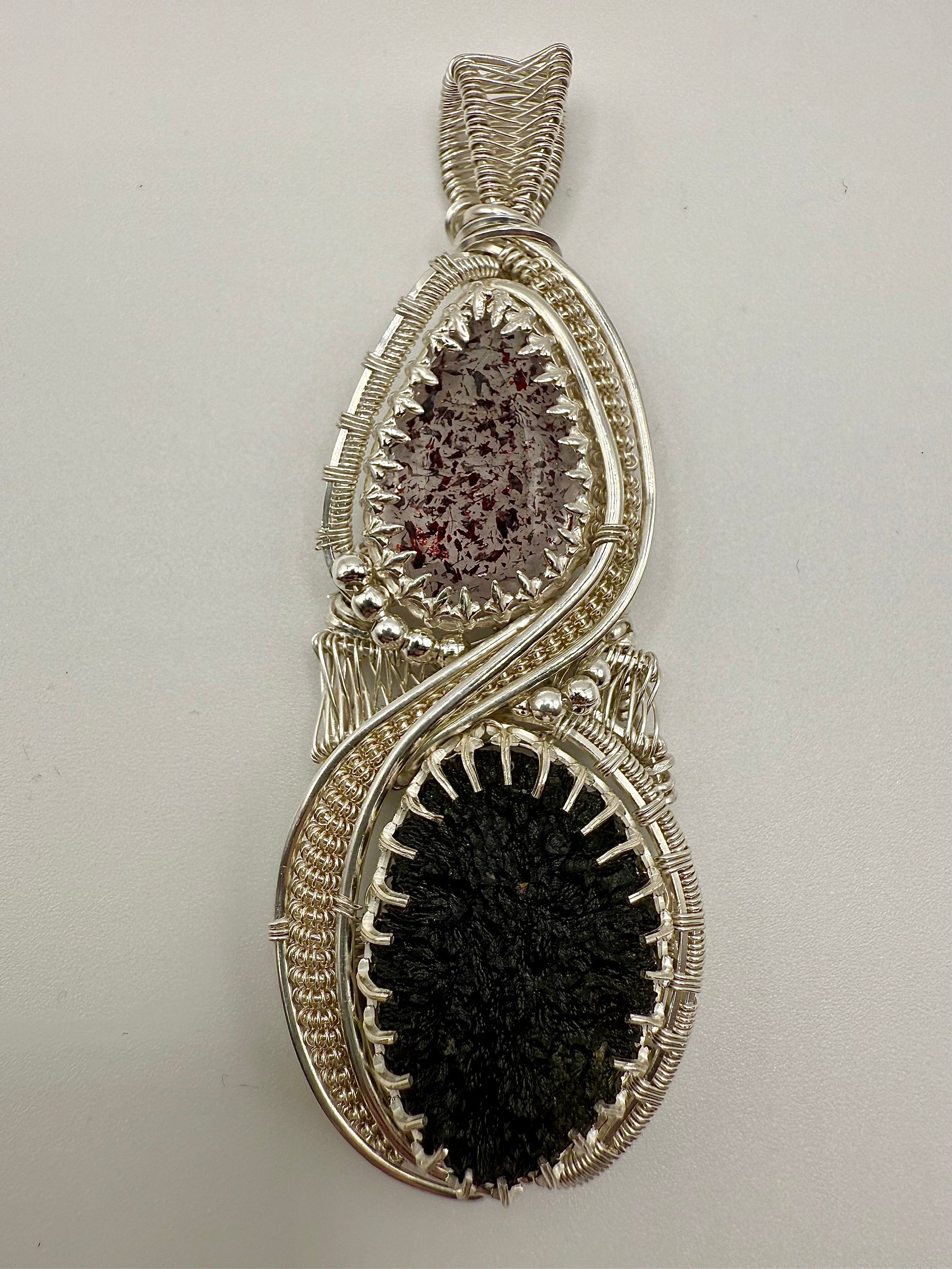GG33) Large Moldavite & Super 7 Pendant NecklaceIn Sterling Silver