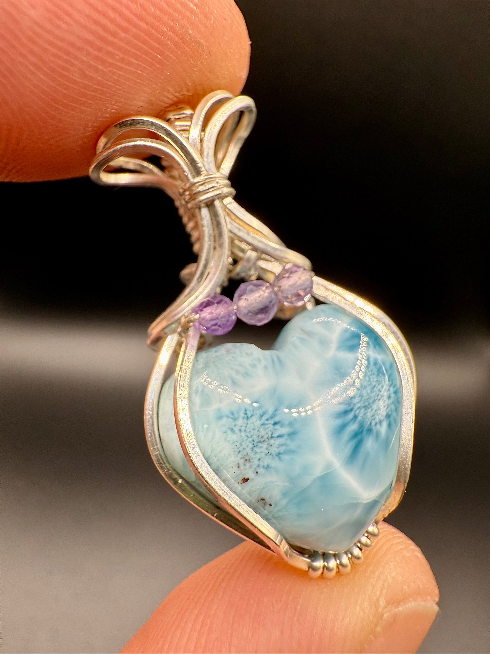 C11) Larimar & Amethyst Pendant In Sterling Silver