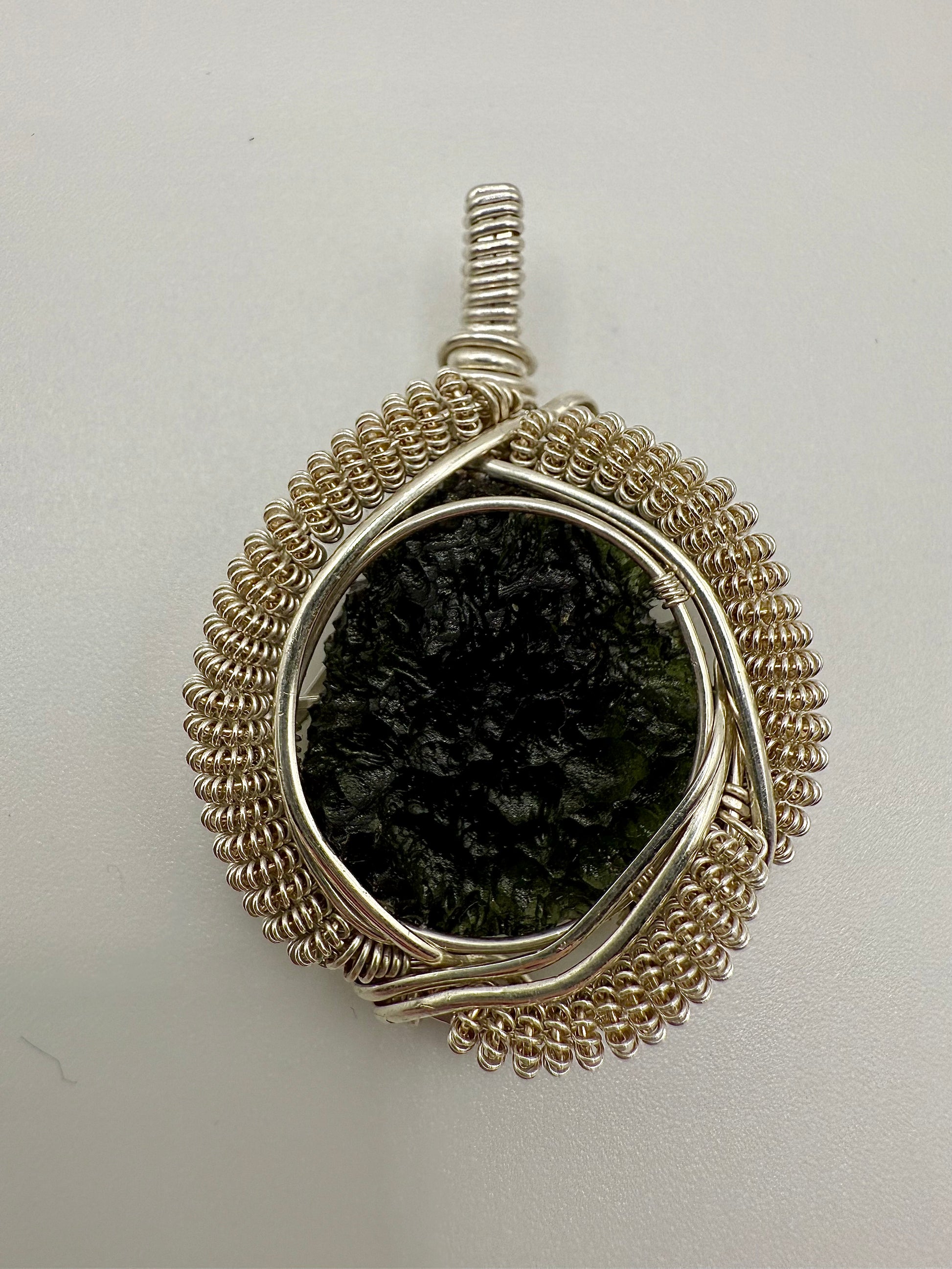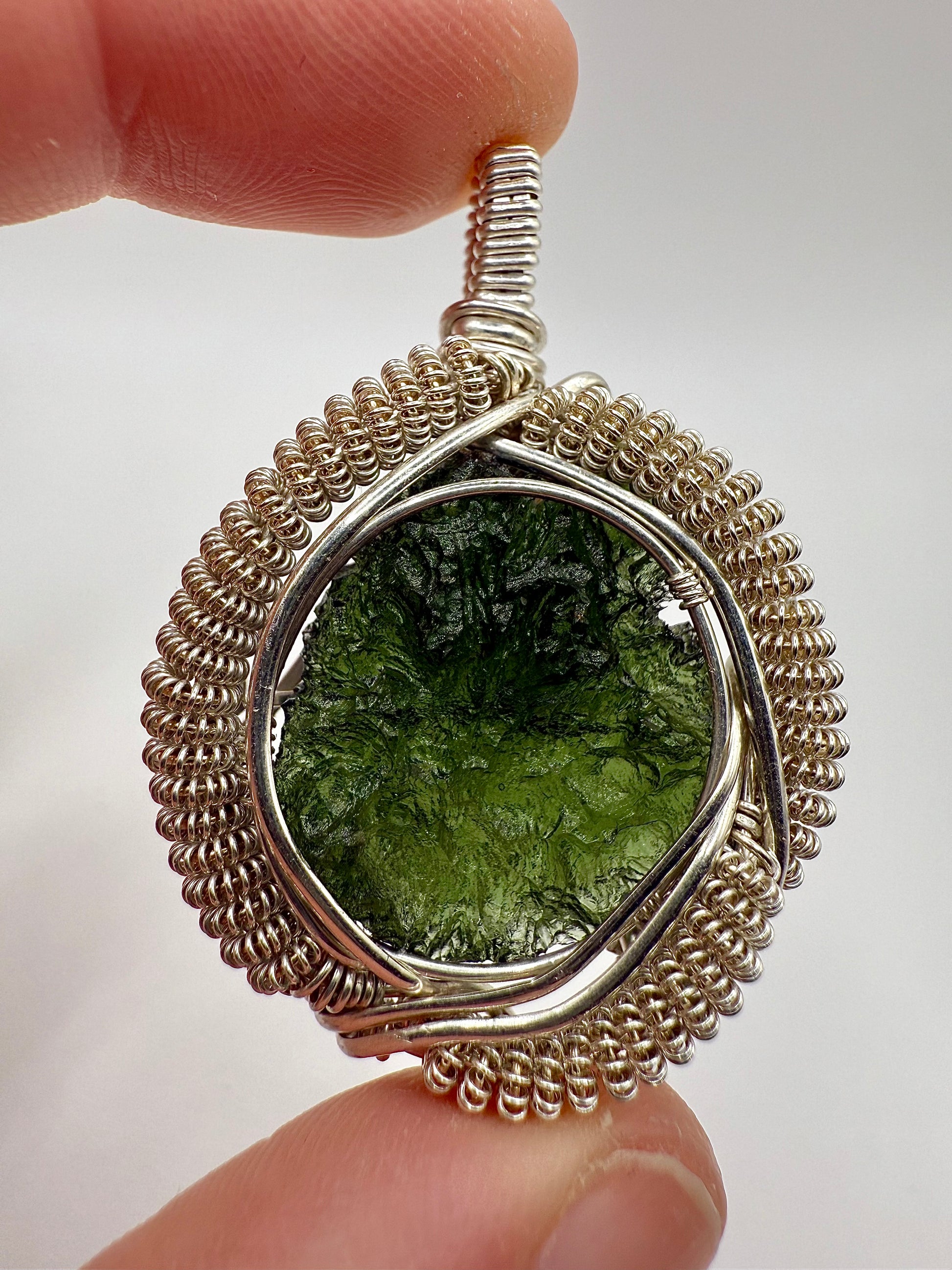 1MSS) Moldavite Pendant Necklace In Sterling Silver