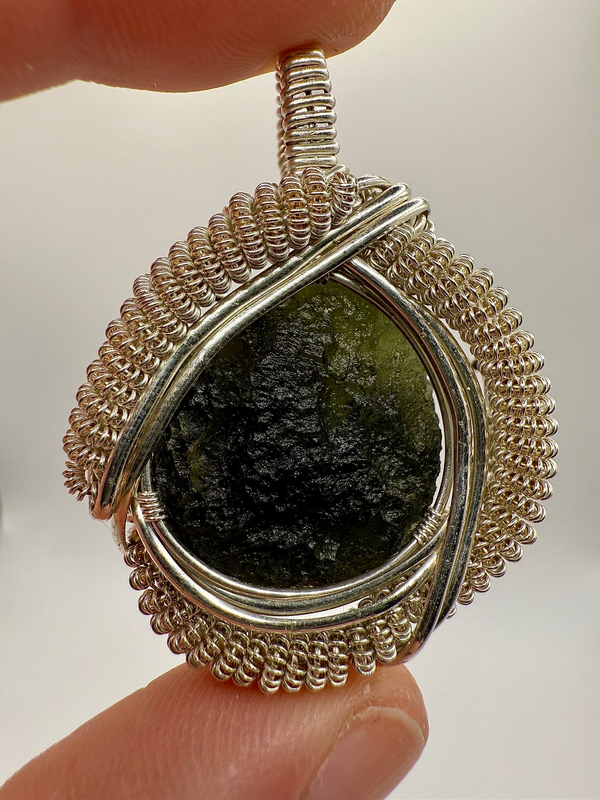 1MSS) Moldavite Pendant Necklace In Sterling Silver