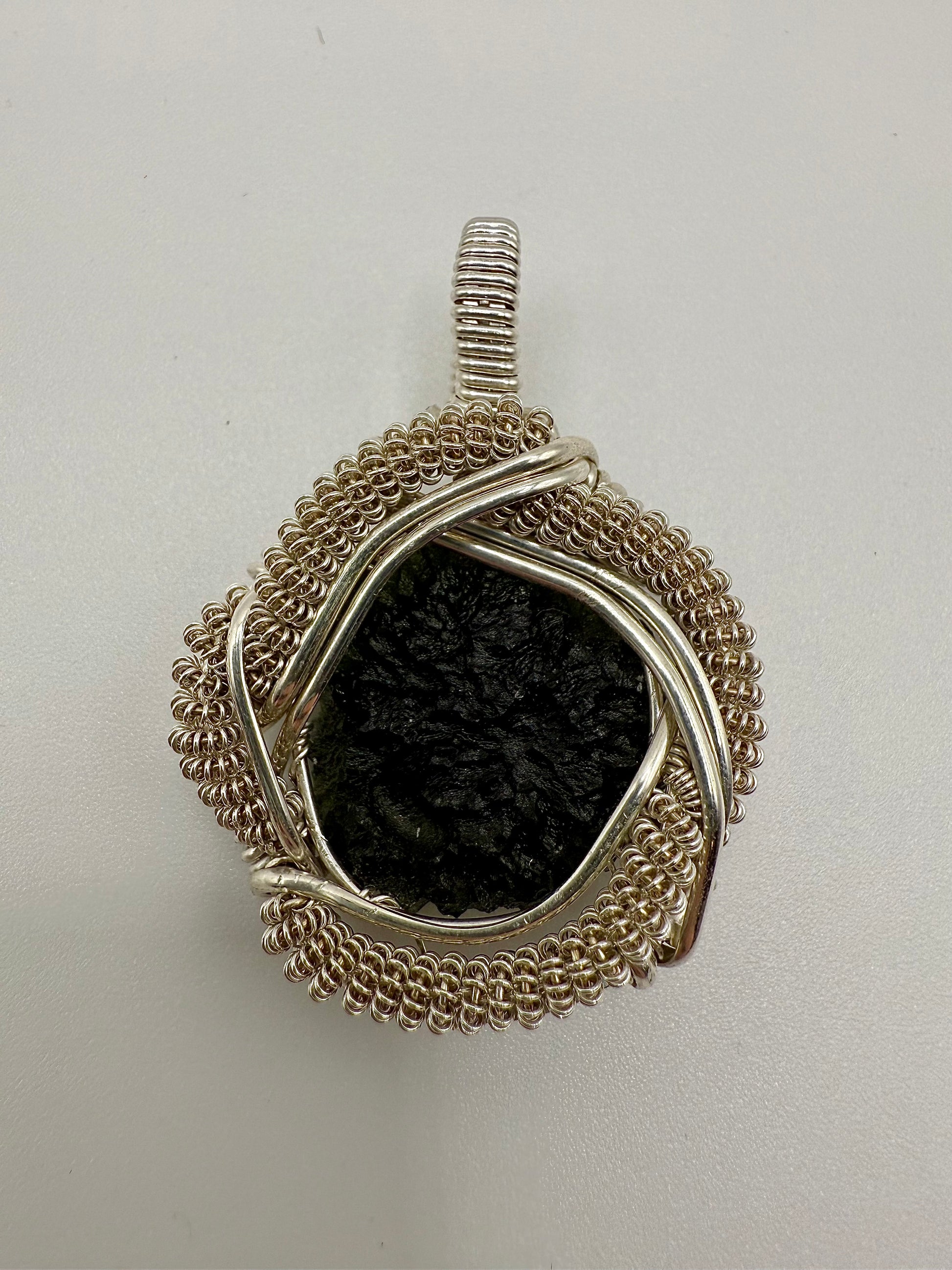 C112) Moldavite Pendant Necklace In Sterling Silver
