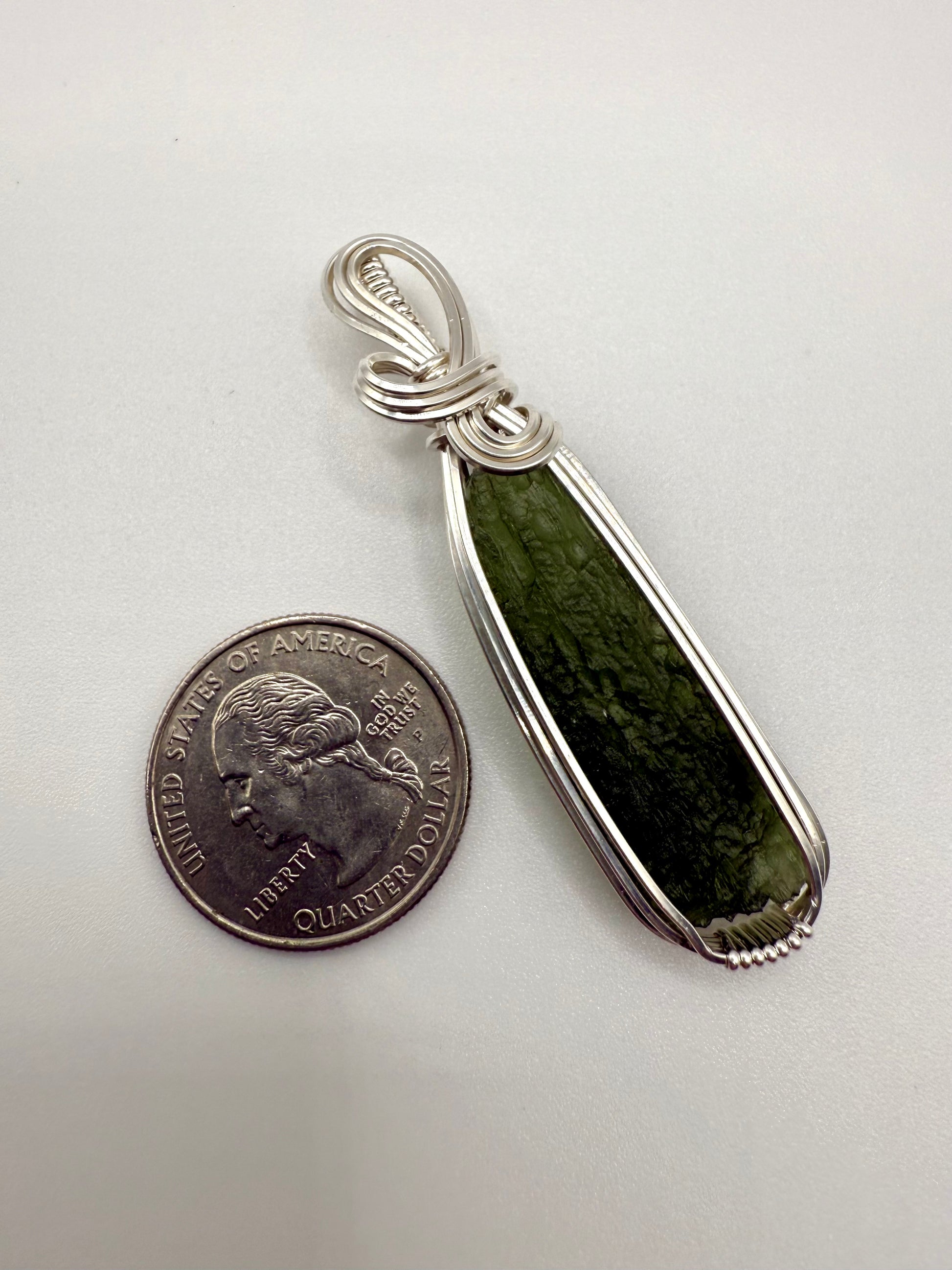 P112) Moldavite Pendant Necklace In Sterling Silver