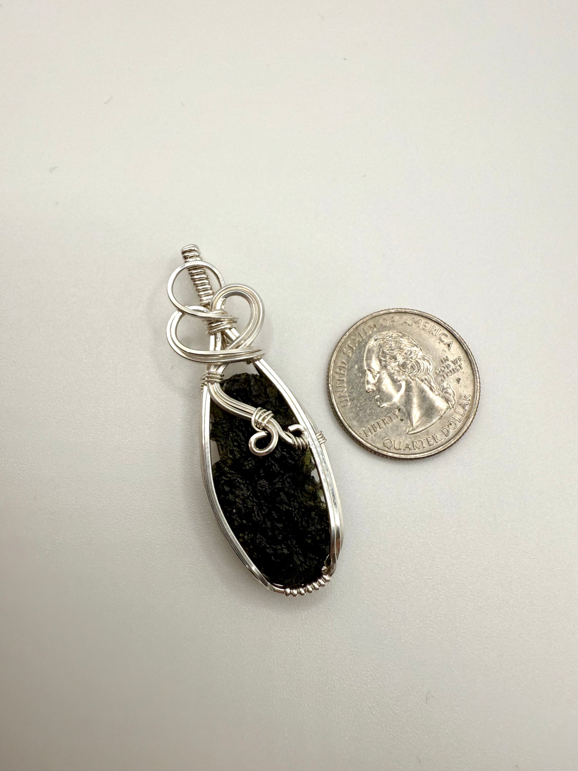 P112) Moldavite Pendant Necklace In Sterling Silver