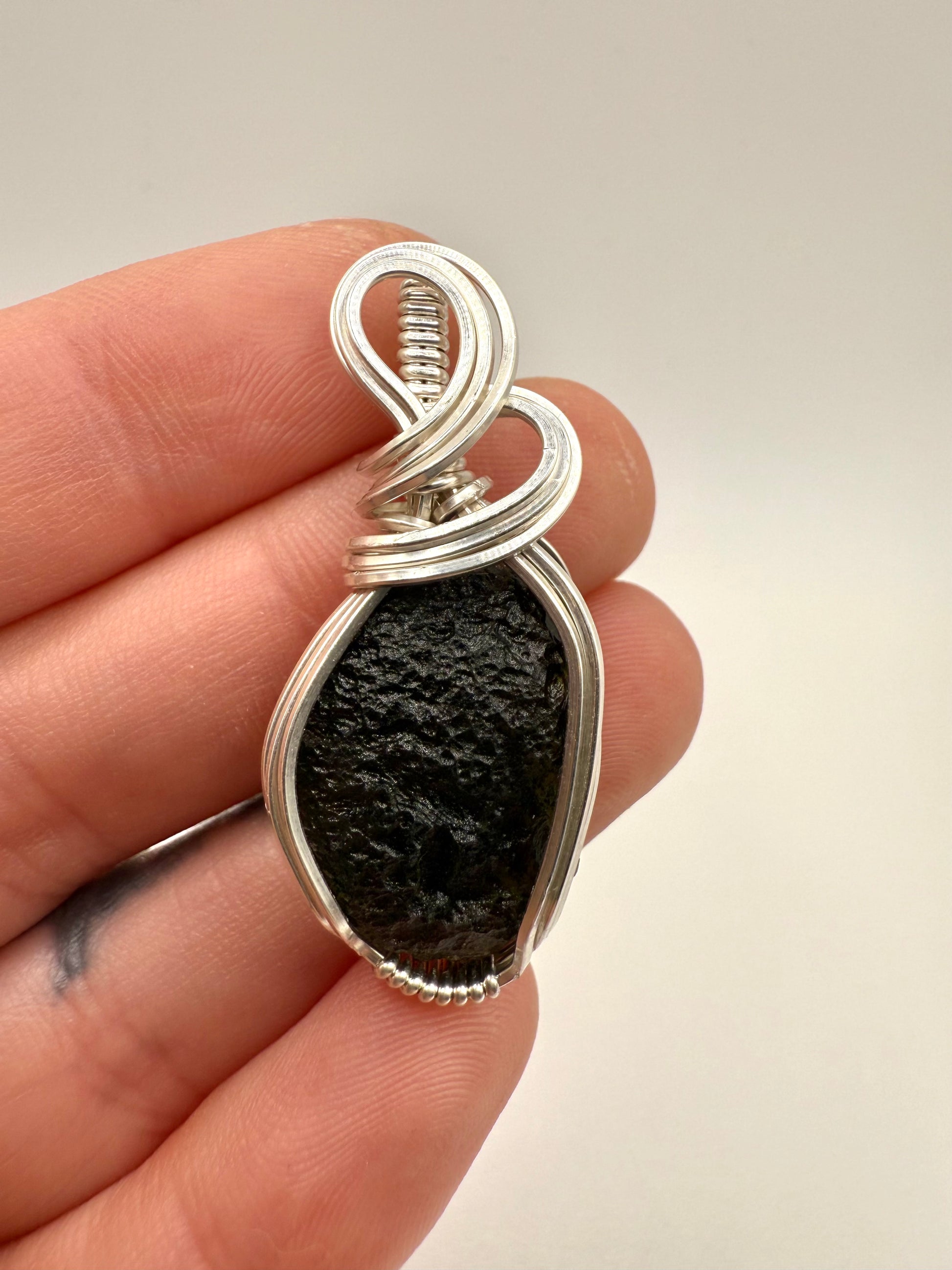 P112) Moldavite Pendant Necklace In Sterling Silver