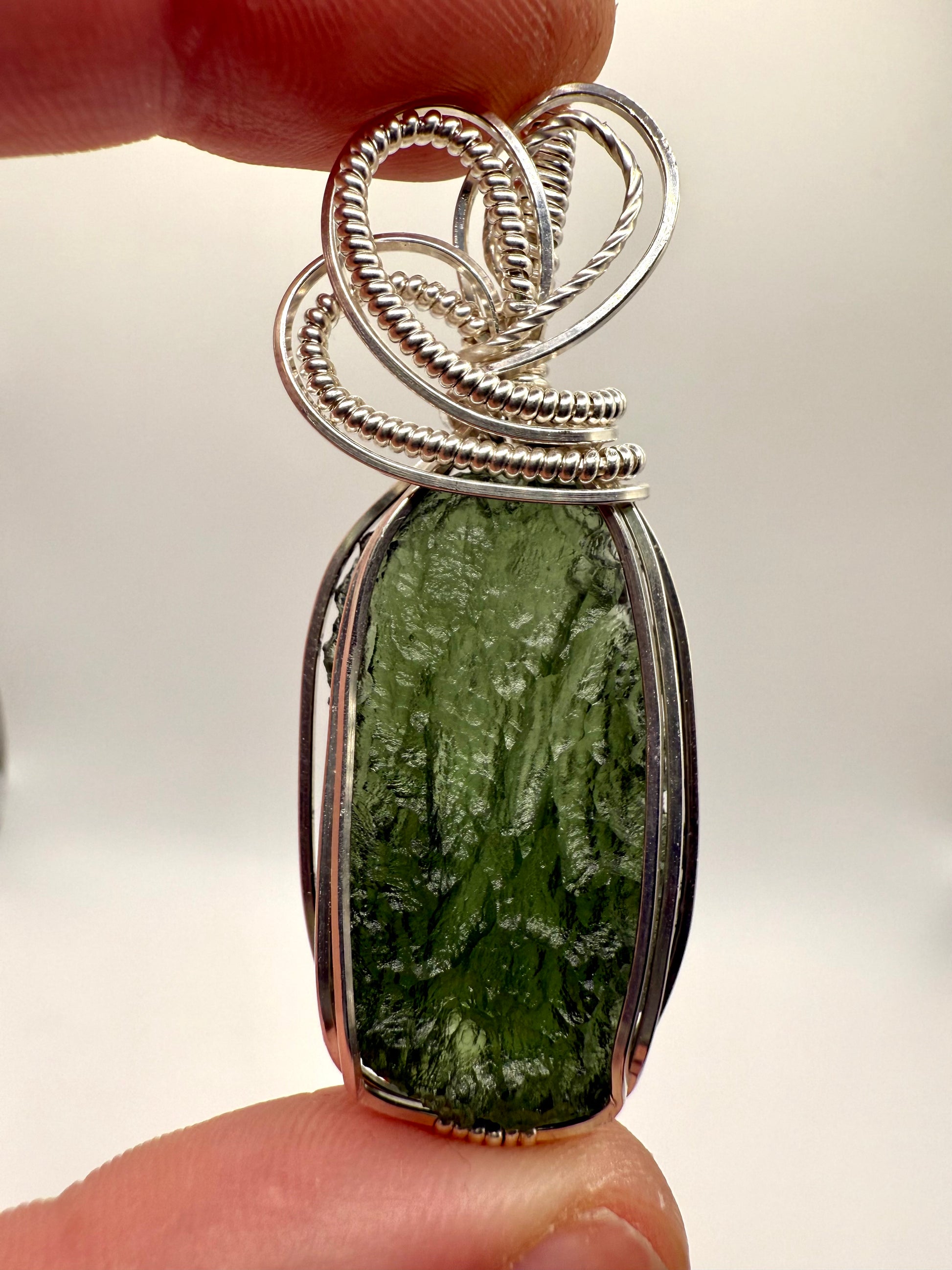 P112) Moldavite Pendant Necklace In Sterling Silver