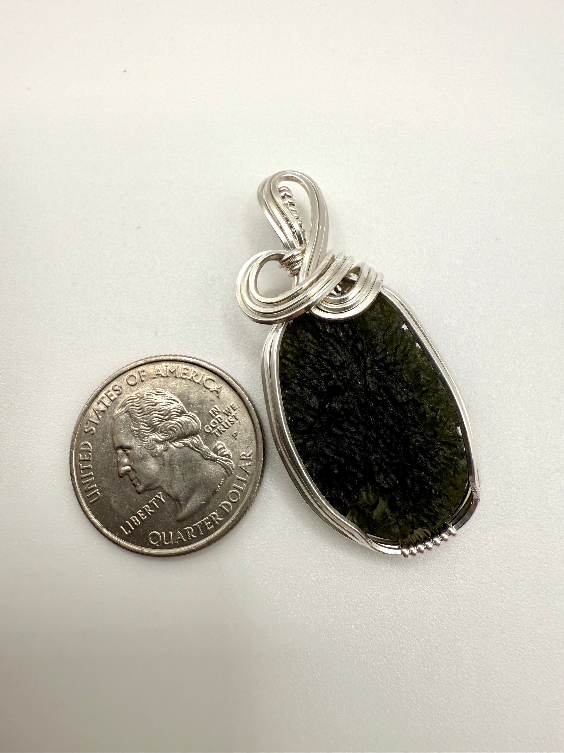 P112) Moldavite Pendant Necklace In Sterling Silver