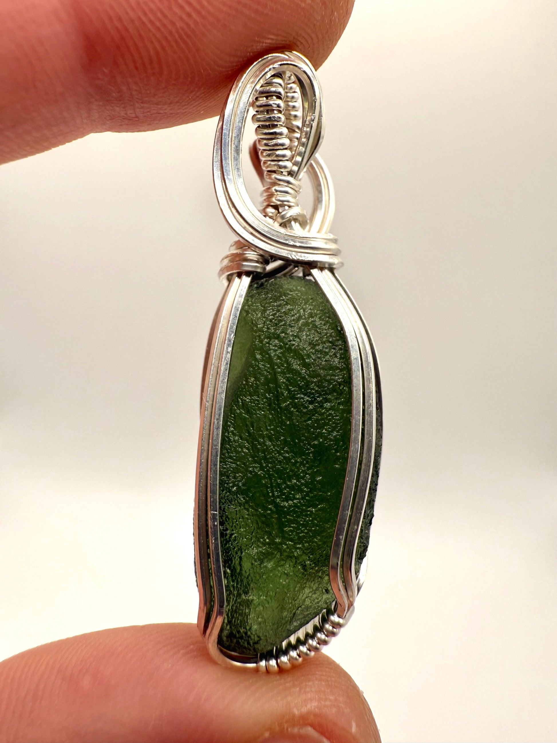 P112) Reversible Moldavite Pendant Necklace In Sterling Silver