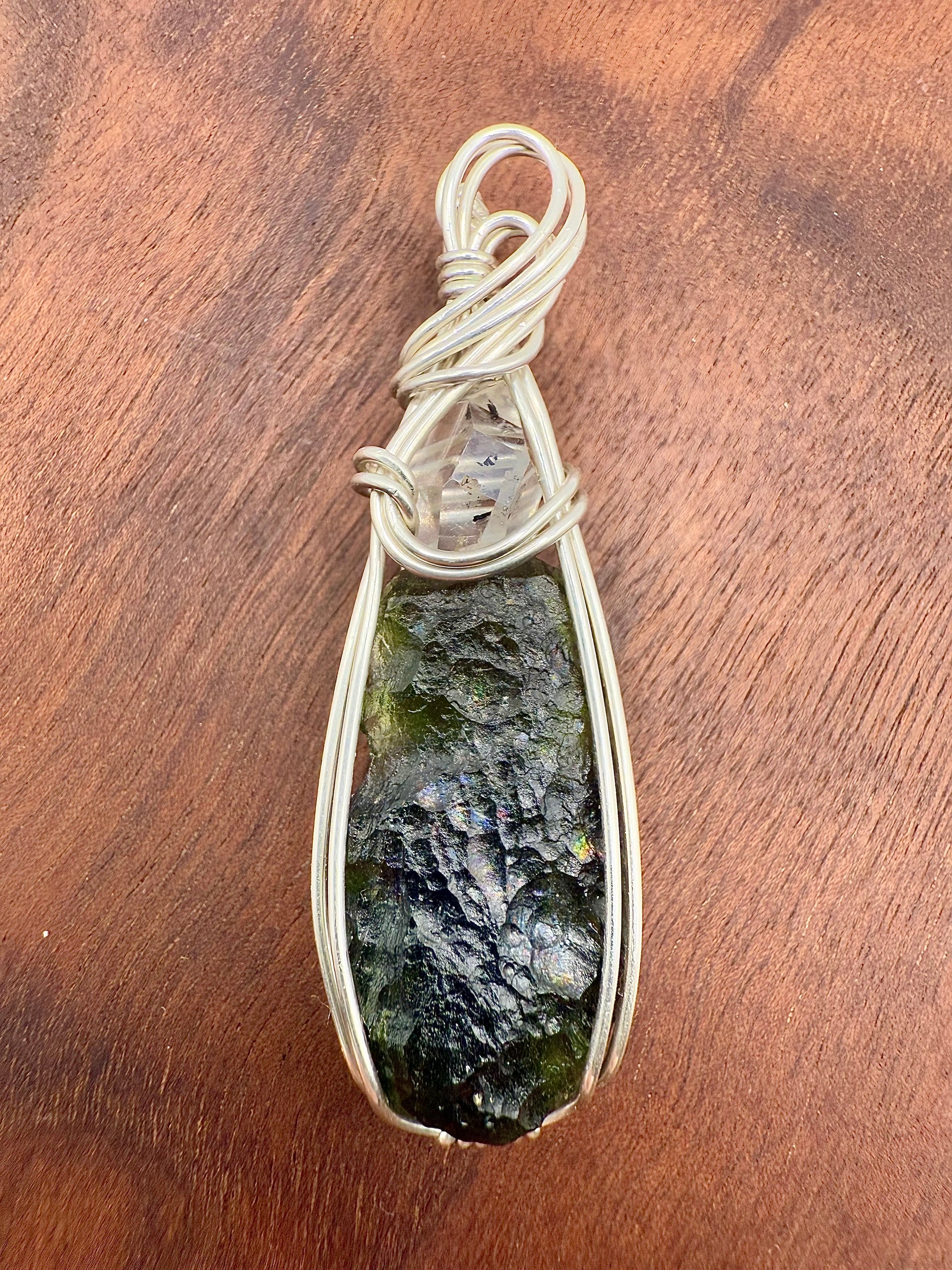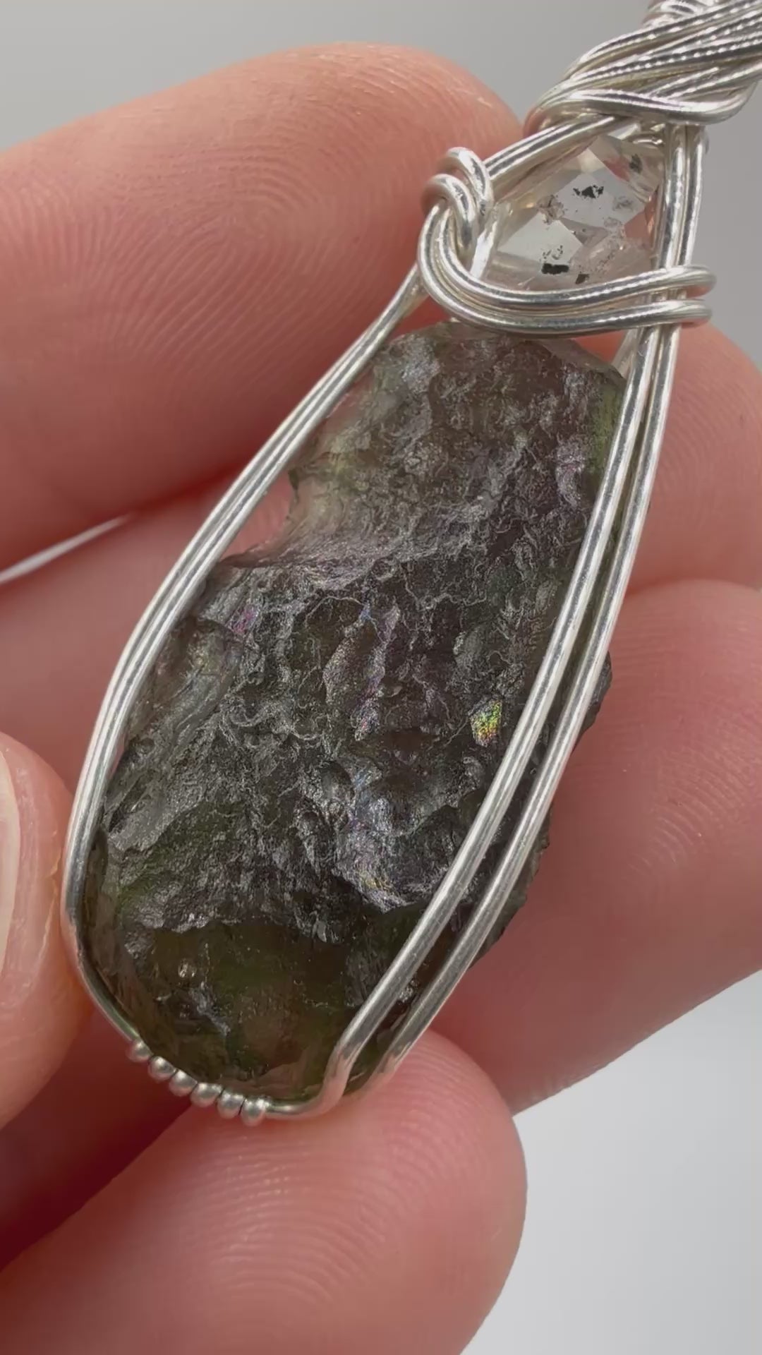 C11) Rainbow Vrabce Moldavite & Herkimer Diamond In Sterling Silver