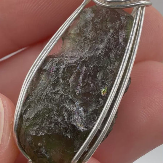 Moldavite with rainbows is very rare! It’s caused from the sail containing iron oxide and the moldavite infusing with it for millions of years in the soil creating beautiful rainbows on the surface of the Moldavite.