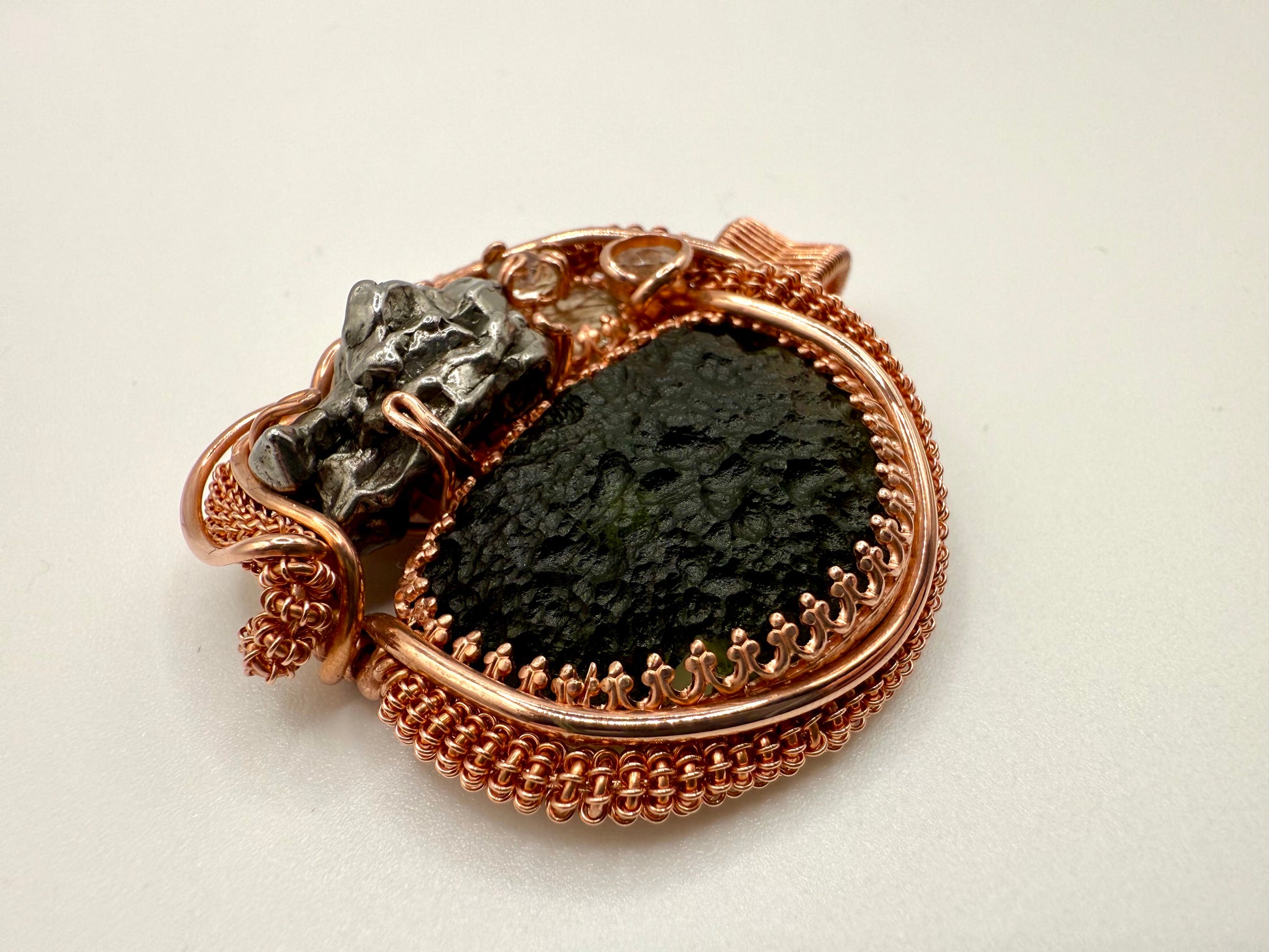 Z112) Moldavite, Meteorite, and a cluster of LDG in copper